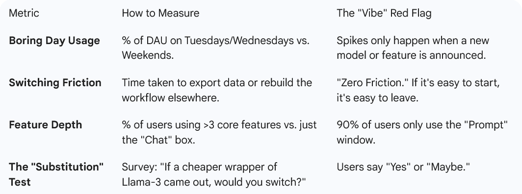 • Proprietary Context: Does the startup have a unique RAG/Fine-tuning layer that persists across model upgrades?